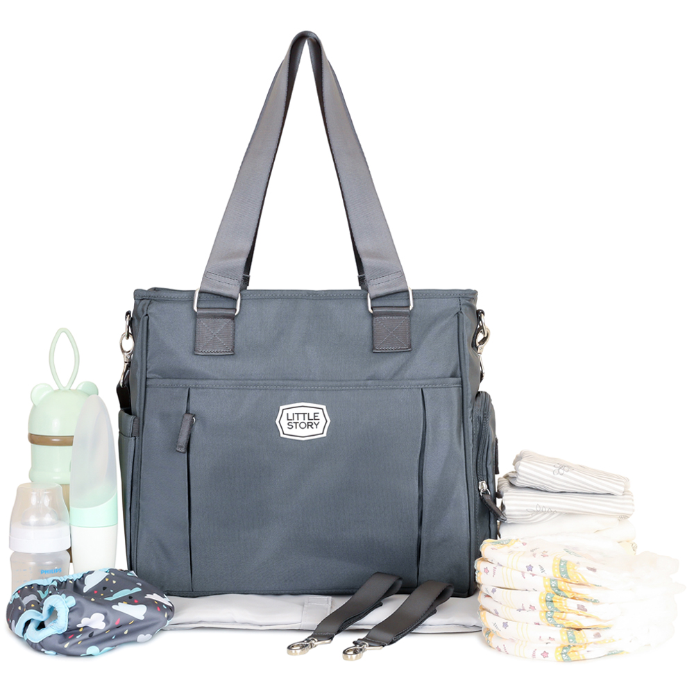 This bundle includes the Little Story Mamma Diaper Bag, crafted from 100% waterproof fabric that is strong, flexible, and easy to wipe clean. Designed for organized parenting, the bag features multiple storage pockets, side compartments for wipes and bottles, a built-in wipes pocket with zipper, a waterproof changing pad, and detachable stroller hooks for added convenience during outings.