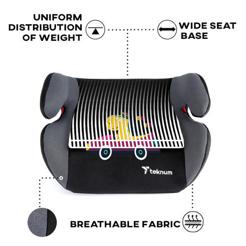 The Teknum Dinosaur Car Seat Booster is designed to provide safe and comfortable seating for children aged 4 to 12 years. Suitable for a weight range of 15kg to 36kg and classified under Group 2/3, this booster seat offers dependable support for growing kids during everyday travel. Its compact and lightweight structure makes it easy to move between vehicles while maintaining stability and comfort.