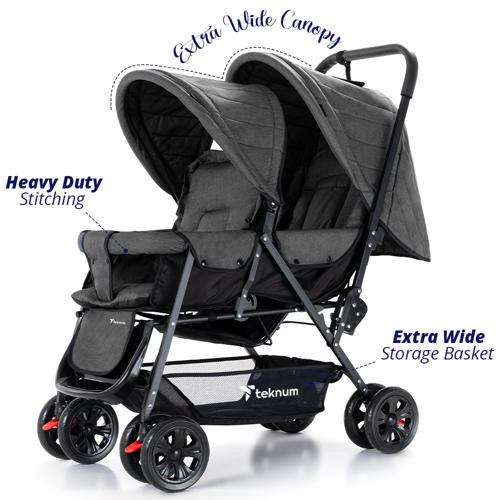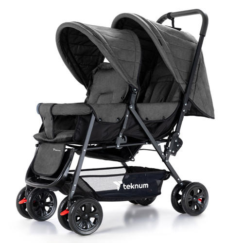Teknum Double Baby Stroller Twin 6-36 Months 20Kg, Color: Dark Grey