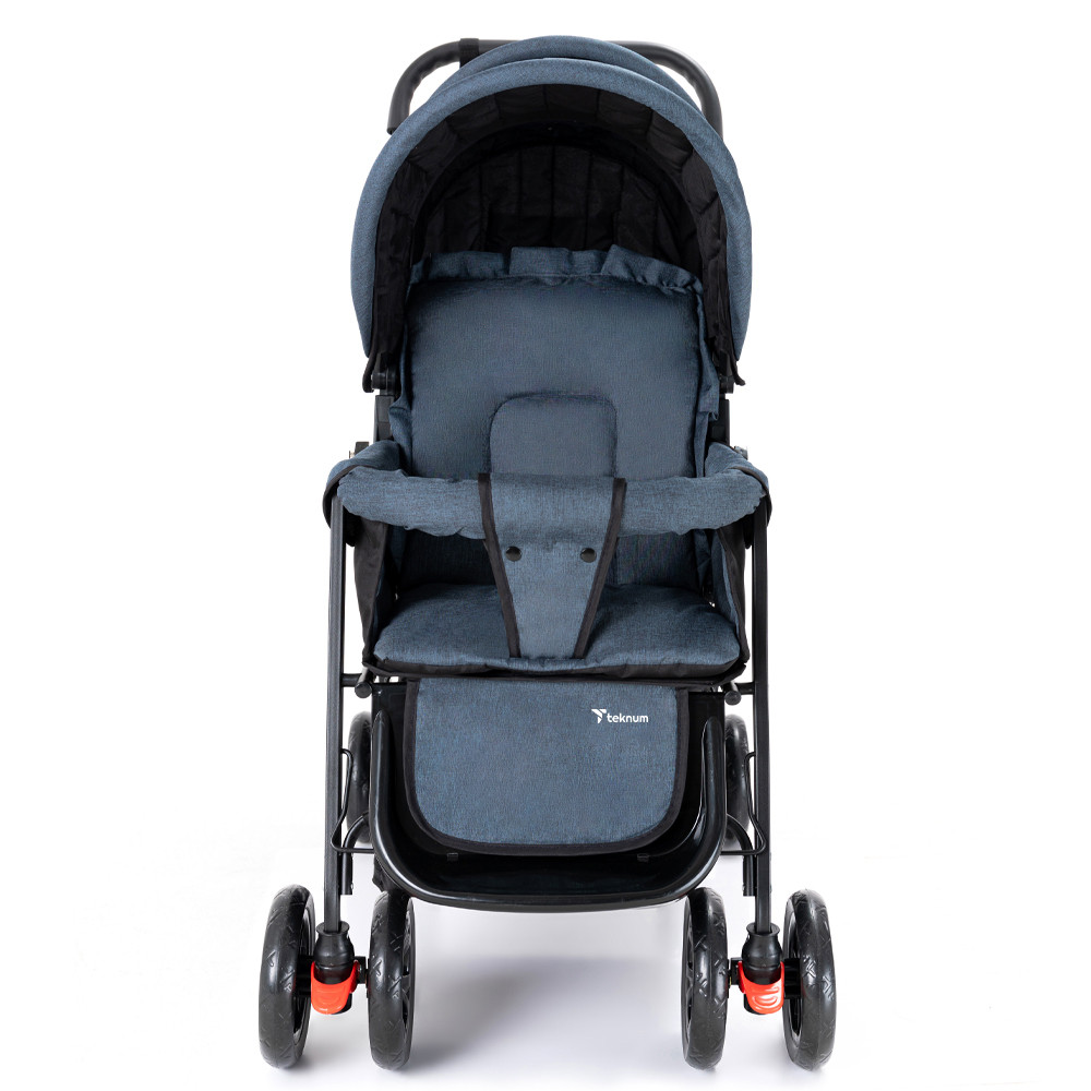 The Teknum Double Baby Stroller is designed for families with twins or siblings close in age. Built with a strong and sturdy frame, this double stroller provides a smooth ride while remaining slim enough to pass through standard gates. Both the front and rear seats can be reclined flat, allowing each child to rest comfortably during outings.
