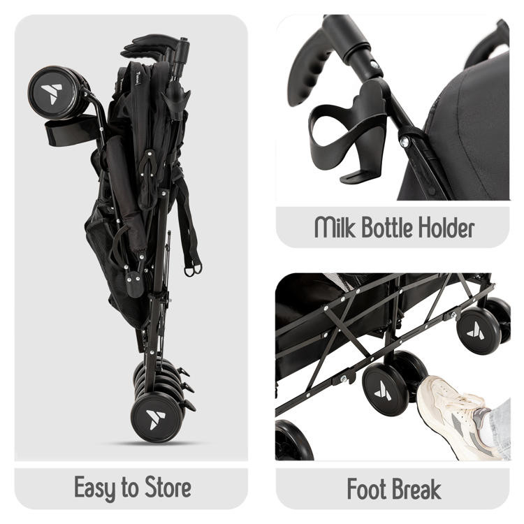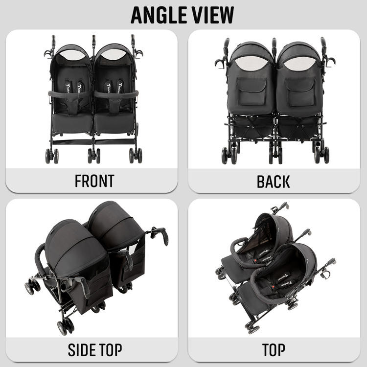 With its slim frame design, the stroller easily passes through standard gates and doorways. Both seats feature 180-degree full recline positions, allowing babies to rest comfortably. Made with linen fabric and cushioned seating, it ensures a soft and breathable environment for your little ones.