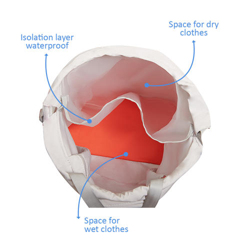 • Organized Storage: Main compartment, internal wet pocket, and zipper pocket.