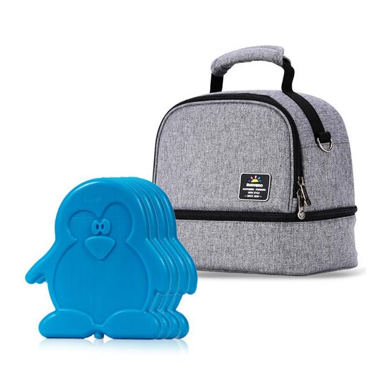 The Sunveno Insulated Bottle/Lunch Bag with 4 Pcs Penguin Ice Pack Set is a practical and stylish solution for keeping meals and baby essentials fresh while on the go. Designed with a dual-compartment layout, this 9L capacity bag allows you to store hot and cold items separately for better organization and temperature control.