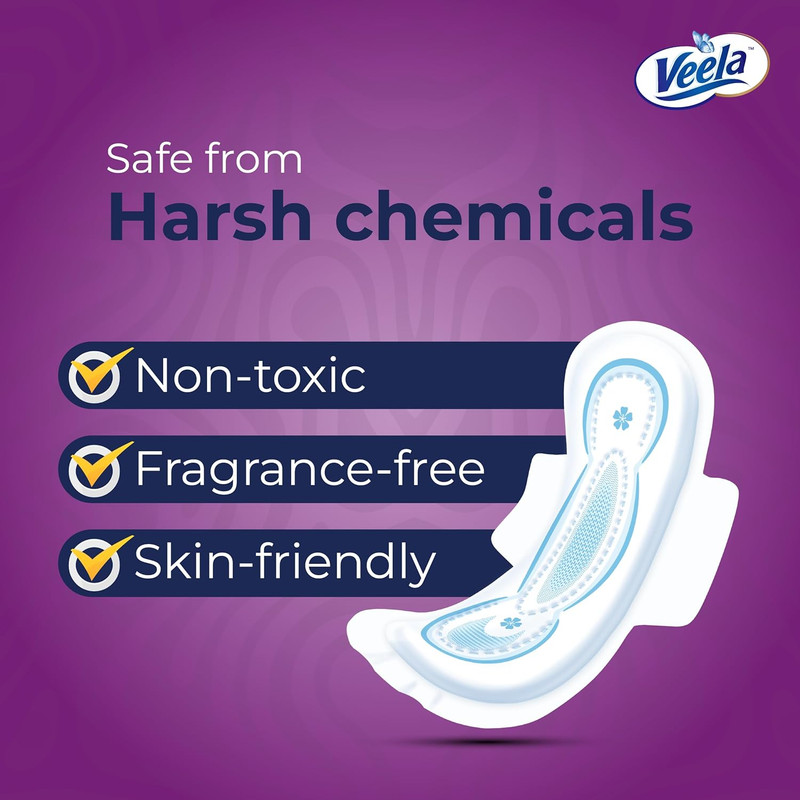 Feel protected, comfortable, and confident every day of the month with Veela Cushion Soft Ultra Thin Pads. Designed to deliver reliable protection in a slim profile, these sanitary napkins combine ultra-soft materials with breathable comfort. The advanced absorbent core locks in moisture and helps protect during medium to heavy flow days, while maintaining a light and flexible feel. With leak-proof side guards and odor control support, these pads provide discreet and dependable feminine hygiene protection.
