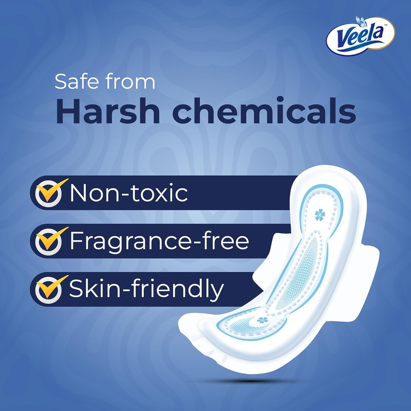 Feel protected, comfortable, and confident every day of the month with Veela Cushion Soft Ultra Thin Pads. Designed for reliable protection in a slim and lightweight form, these sanitary napkins combine ultra-soft materials with breathable comfort. The advanced absorbent core locks in moisture and helps protect during medium to heavy flow days, while maintaining a flexible and discreet fit. Leak-proof side guards and odor control support provide dependable feminine hygiene protection throughout the day.