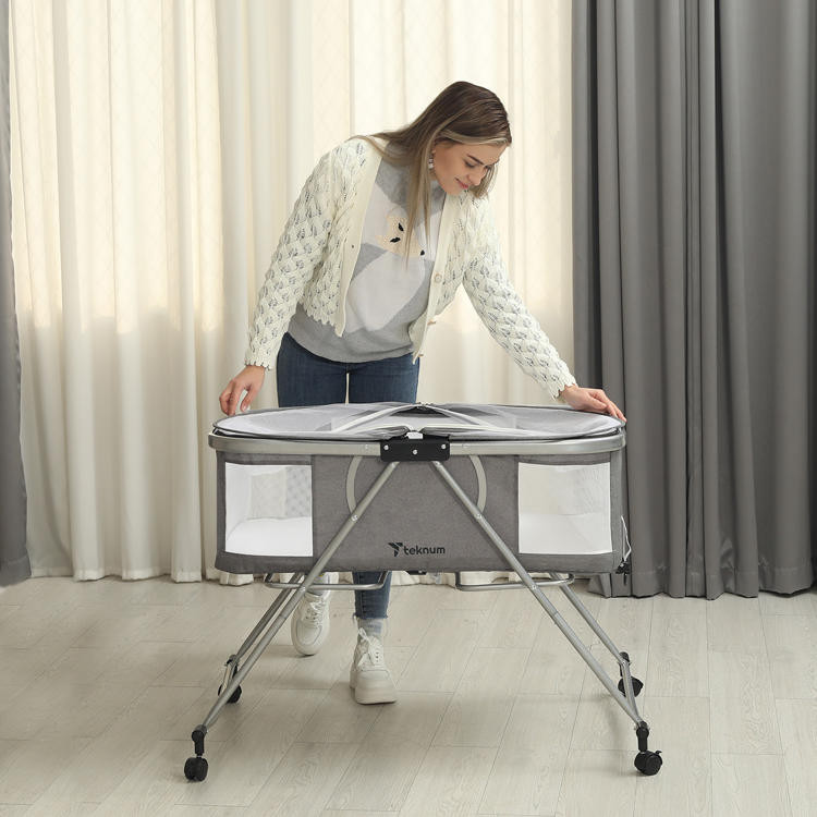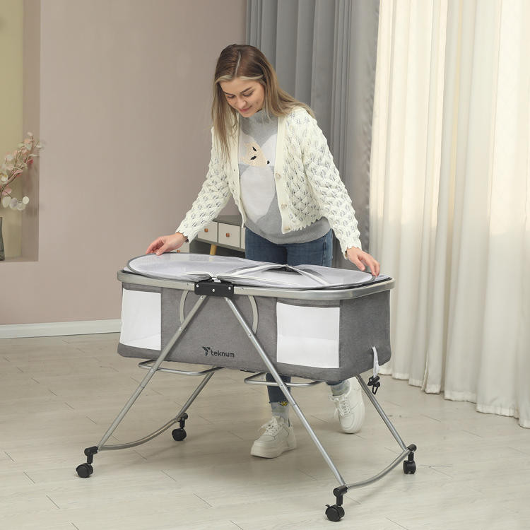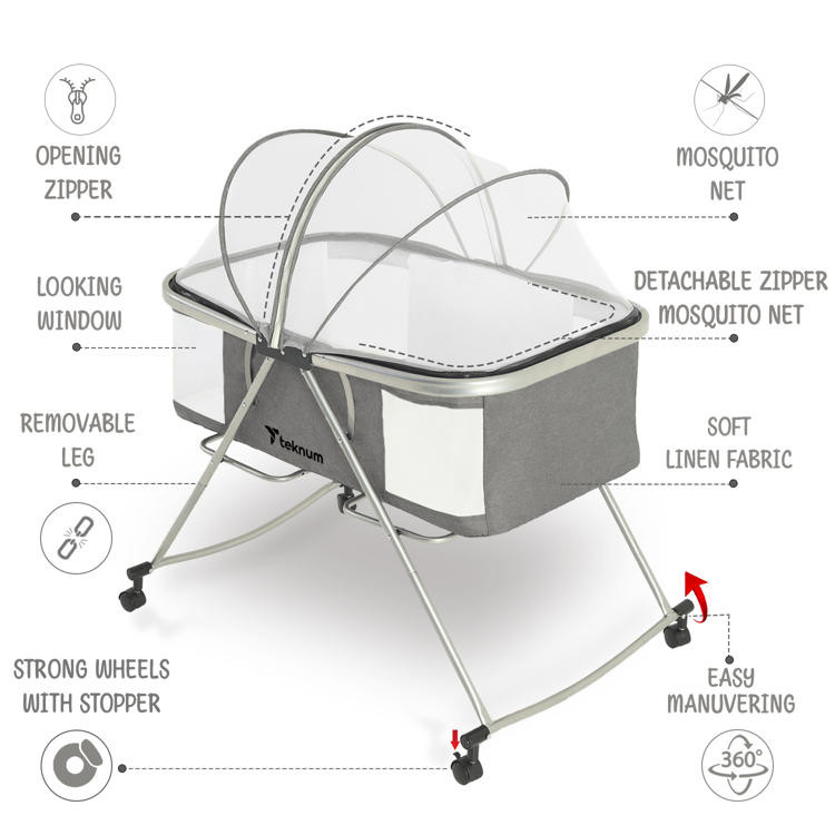 - Foldable Wheel System: Switch between bassinet and cradle mode by folding wheels.