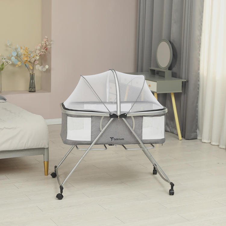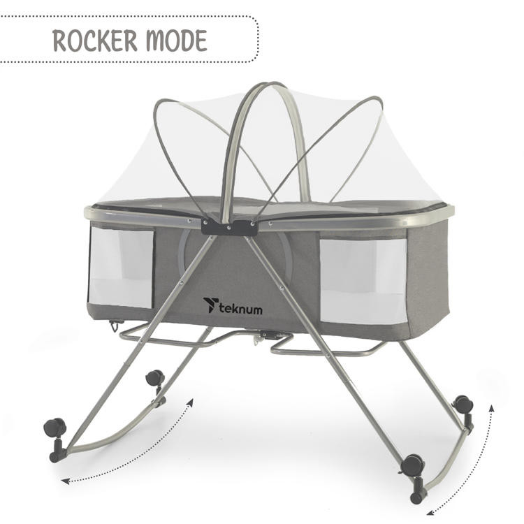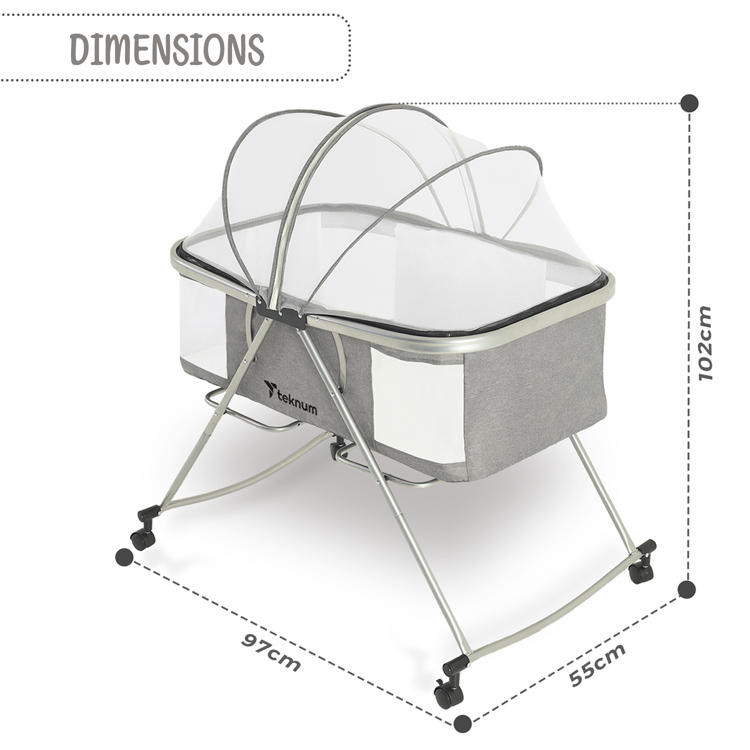 Teknum 3In1 Baby Cot Cradle With Mosquito Net Wheels 0-12 Months 15Kg