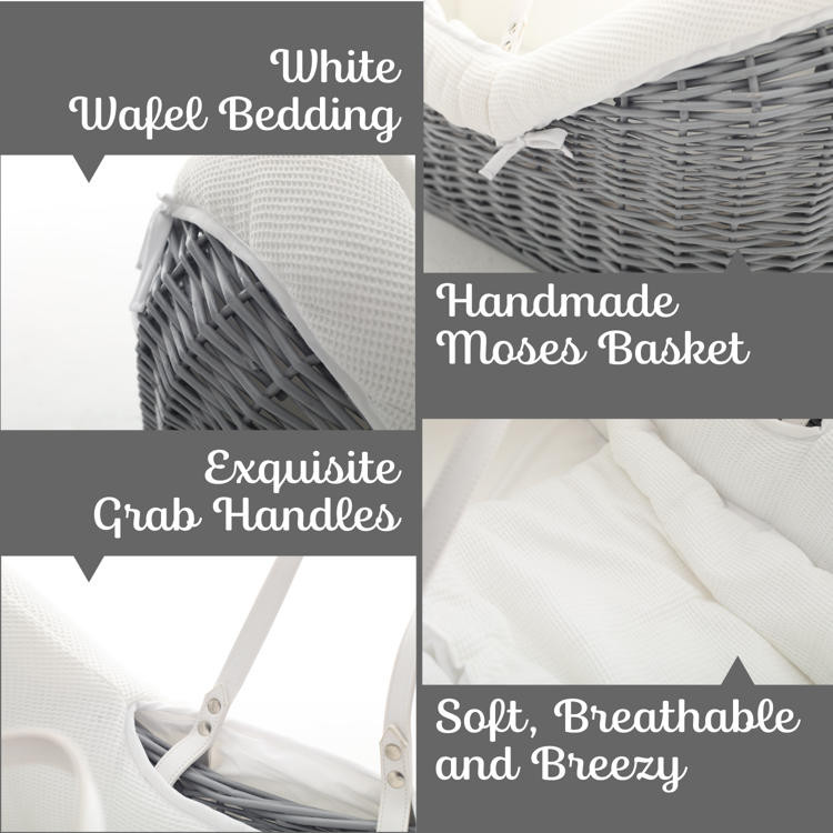 Teknum Infant Wicker Pod Moses Basket With White Waffle Beddings 0-6 Months