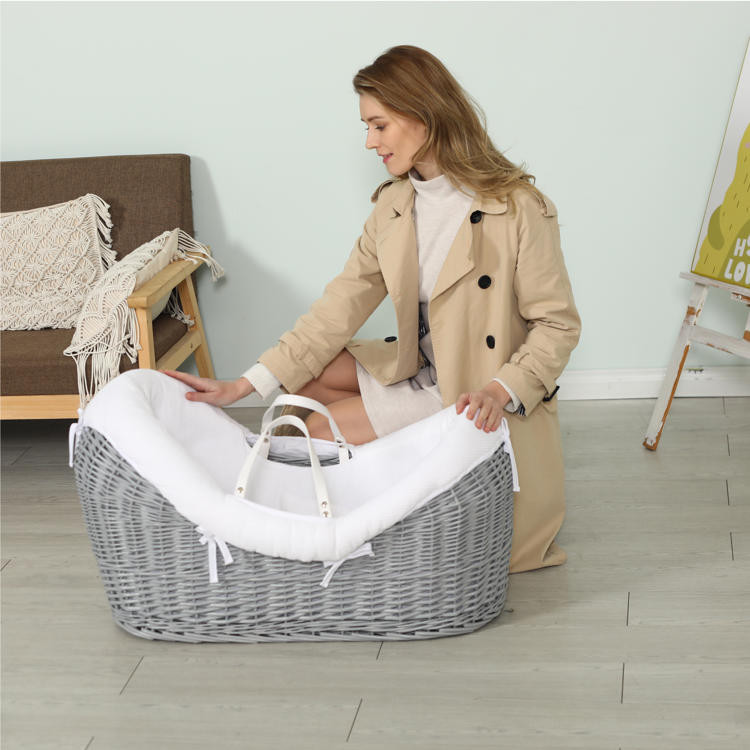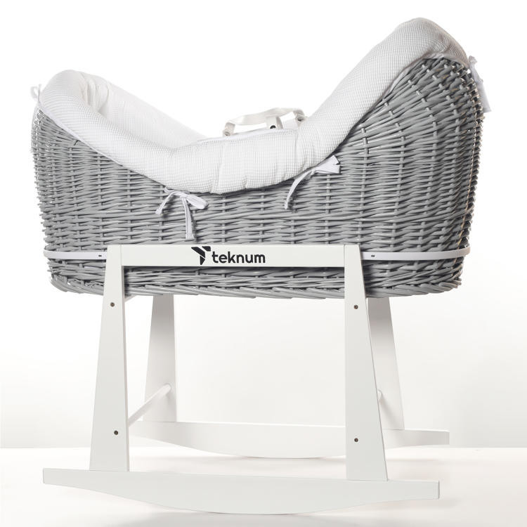 Designed with integrated carry handles for portability of the empty basket only, this Moses basket is ideal for keeping your baby close during daytime naps. It can also be paired with the Teknum Wicker Pod Moses Basket Rocker Stand for enhanced functionality. The complete set includes a quilt, padded liner, and mattress, making it a practical and thoughtful gift for newborns or baby showers.