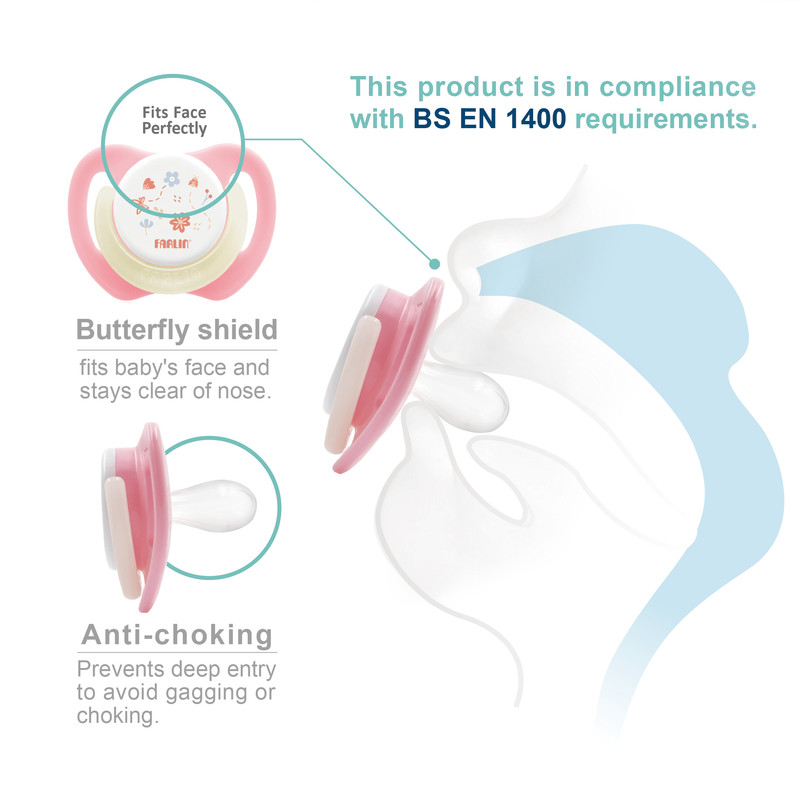 Farlin Chu Chu Cherry Pacifier with Luminous Ring 6M+ is designed to provide comfort for babies from 6 months and above. Featuring a cherry-shaped nipple and a luminous ring that glows in the dark, it offers convenience during nighttime use.