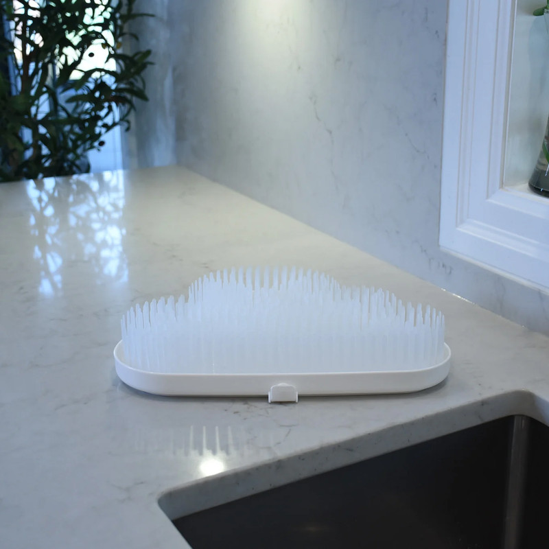 | Melii Baby Bottle Drying Rack Cloud is designed to efficiently dry and organize baby, toddler, and kids’ feeding essentials. Suitable for bottles of any shape or size, nipples, pacifiers, breast pump parts, cutlery, and sippy cups, this versatile drying rack keeps items upright and elevated for proper air circulation. The modern low-profile cloud design complements any kitchen décor. The large capacity drainboard features a convenient spout that directs water into the sink, helping prevent pooling and reducing the risk of mold and mildew buildup. Made from high-quality materials and free from BPA, lead, PVC, and cadmium, it provides a safe and hygienic drying solution. |