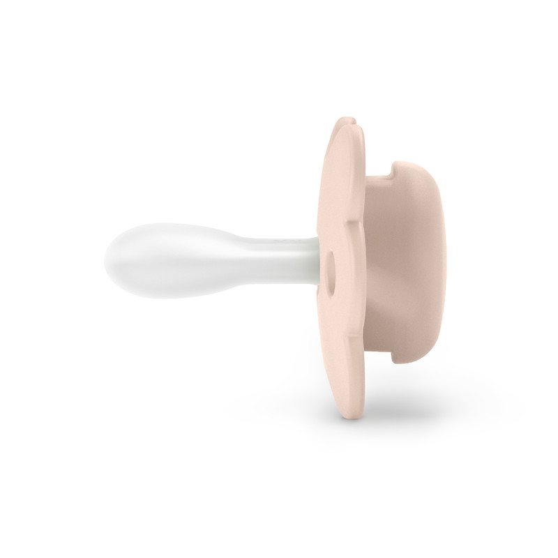 The convex shield helps reduce irritation around the sensitive perioral area, especially during periods of excessive salivation. The ring-free design promotes independence, allowing babies to put the pacifier on and remove it by themselves. The reversible SX Pro physiological teat mimics the natural sensation of not using a pacifier while supporting proper oral positioning.