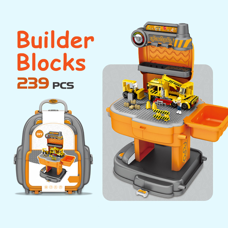 - 2-in-1 Play Mode: School bag storage and expandable standing construction site setup.