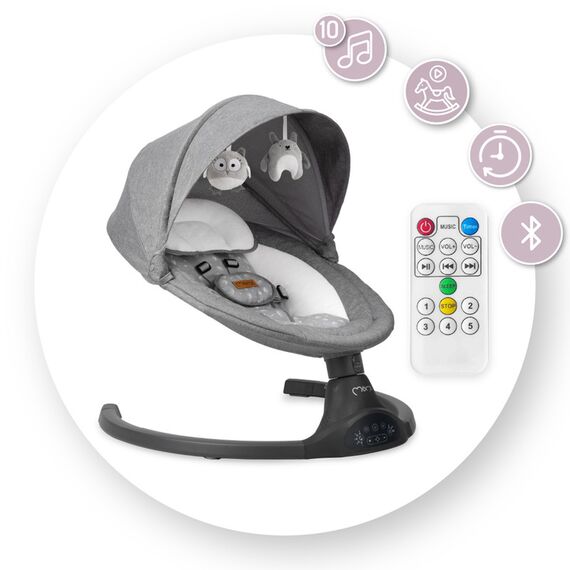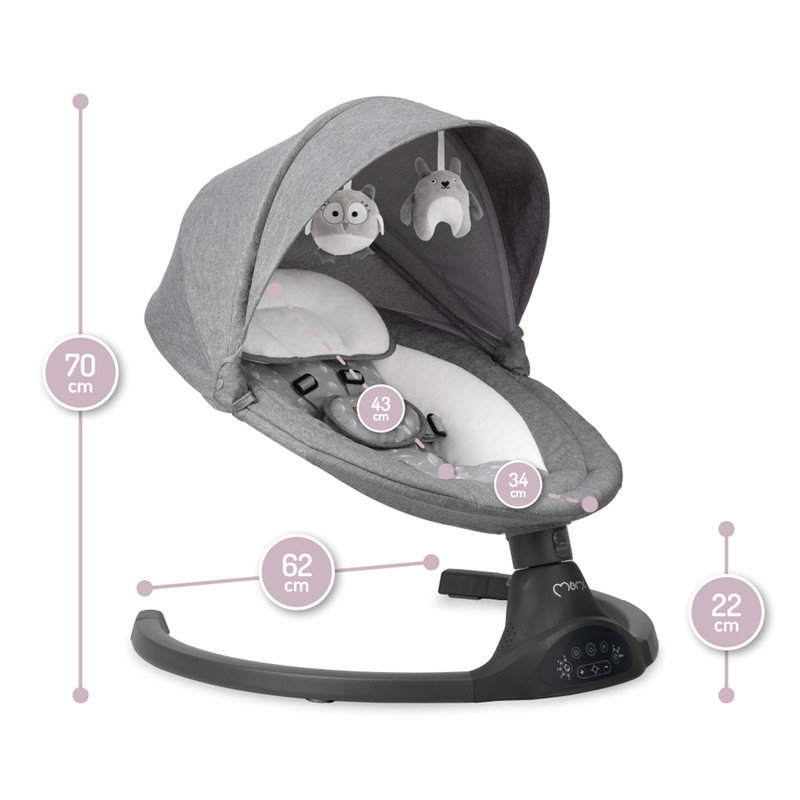 MoMi Kenani Electric Baby Bouncer in Dark Grey is a stylish and functional baby essential designed to keep your little one comfortable and secure while relaxing or playing. Crafted with soft, breathable materials, it provides proper support for your baby’s back, neck, and head to promote healthy development. The gentle side rocking motion mimics natural movements in the womb to soothe and calm your baby. It is electrically driven and can operate using batteries or by connecting to the mains, offering flexibility for home use.