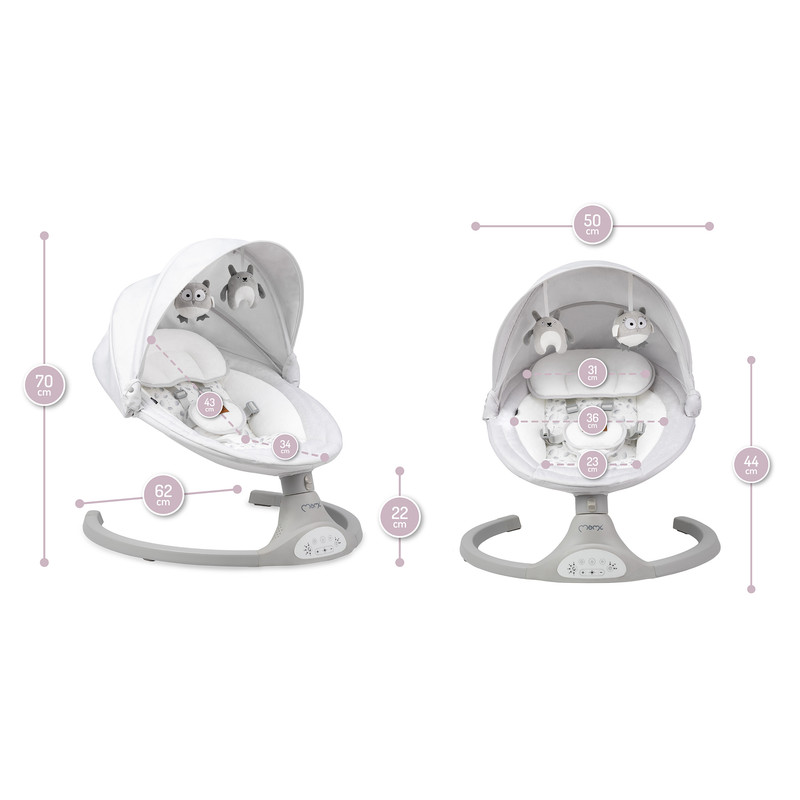MoMi Kenani Electric Baby Bouncer in Dark Grey is a stylish and functional baby essential designed to keep your little one comfortable and secure while relaxing or playing. Crafted with soft, breathable materials, it provides proper support for your baby’s back, neck, and head to promote healthy development. The gentle side rocking motion mimics natural movements in the womb to soothe and calm your baby. It is electrically driven and can operate using batteries or by connecting to the mains, offering flexibility for home use.