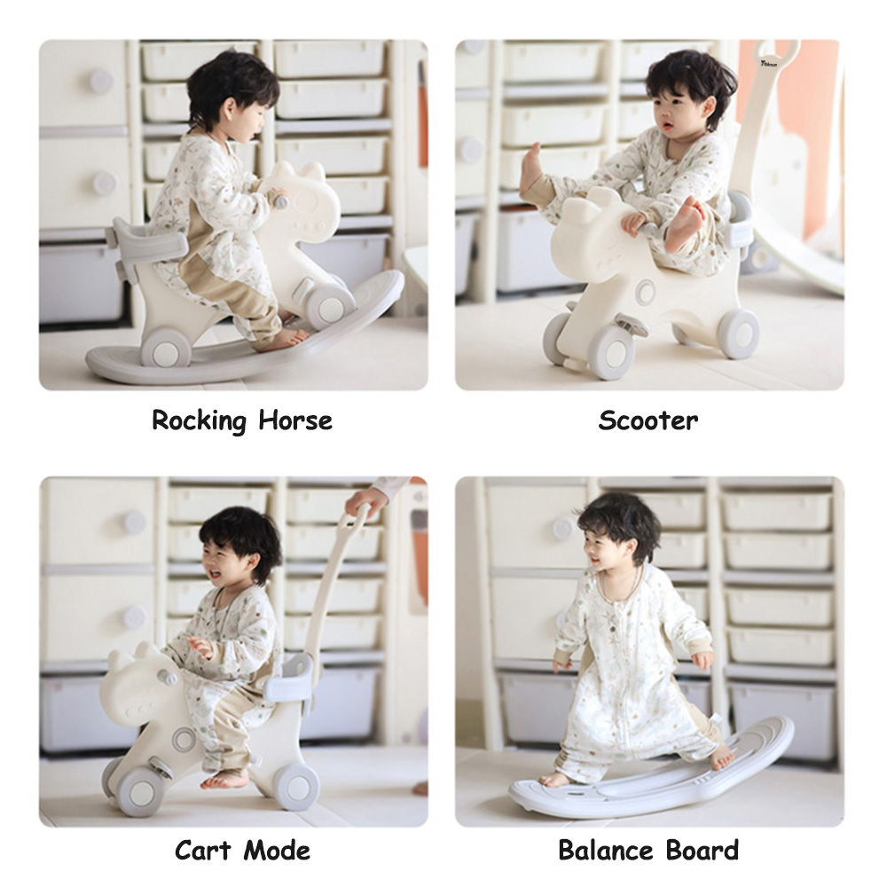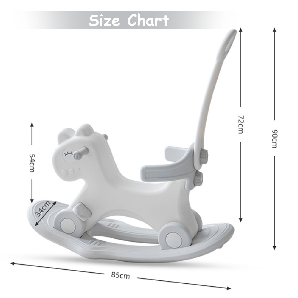 Equipped with a convenient push handle, parents can easily guide and control the ride while children enjoy a safe and smooth experience. Whether rocking gently or riding forward, this toy encourages balance, coordination, and motor skill development.