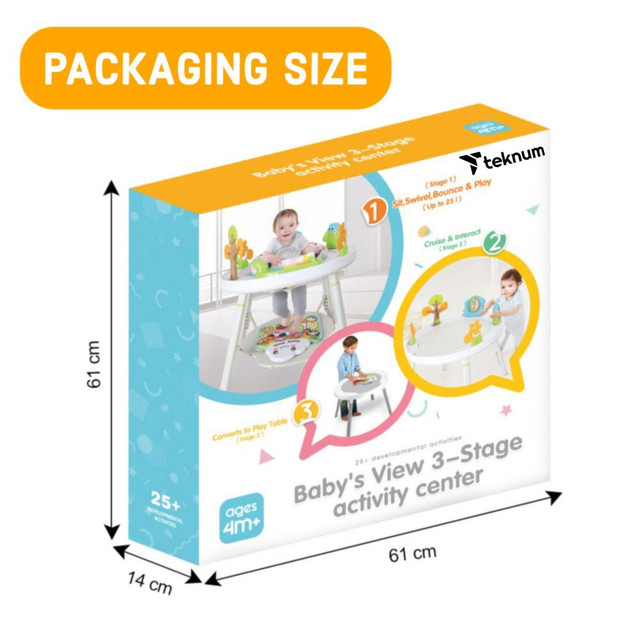 The Teknum 4-in-1 Activity Jumper is a multifunctional activity center designed to enhance your baby’s development through interactive play and learning. This versatile unit transforms into an Activity Jumper, Feeding Chair, Drawing Table, and Playing Station, making it a perfect companion throughout your child’s early growth stages.
