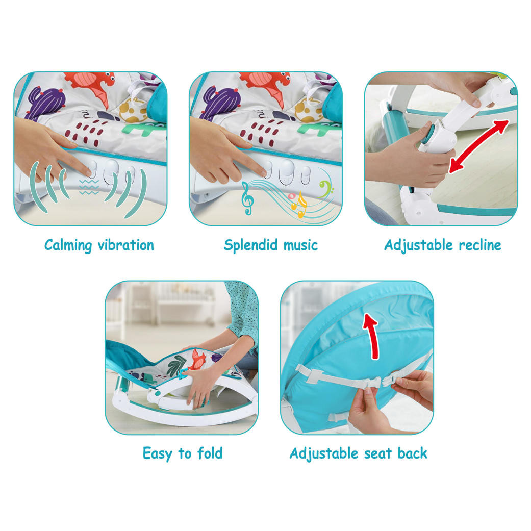 • Soothing Music & Vibrations: Calming features to relax and comfort your baby.